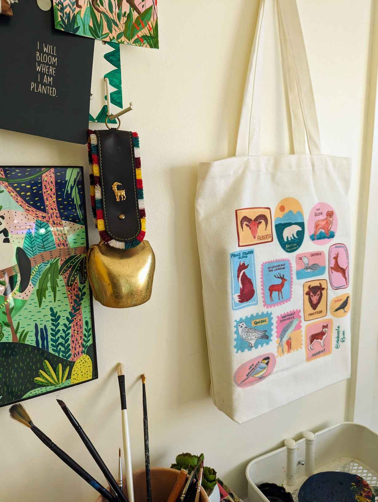 This tote bag has a print of one of Nabeela Rumy's original gouache paintings.