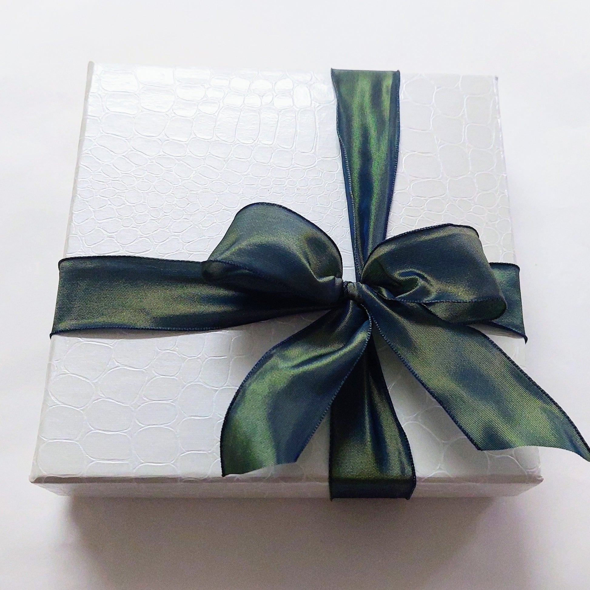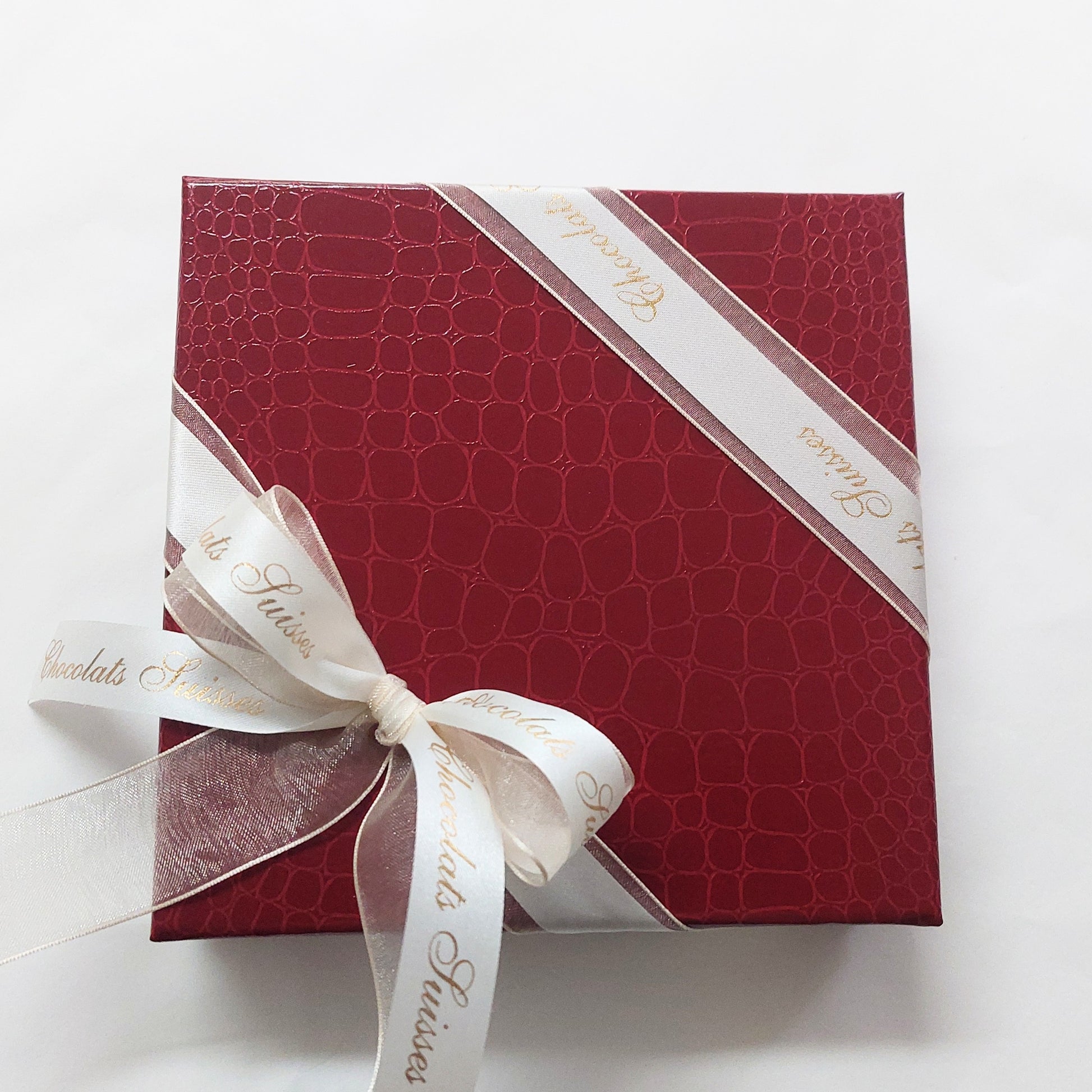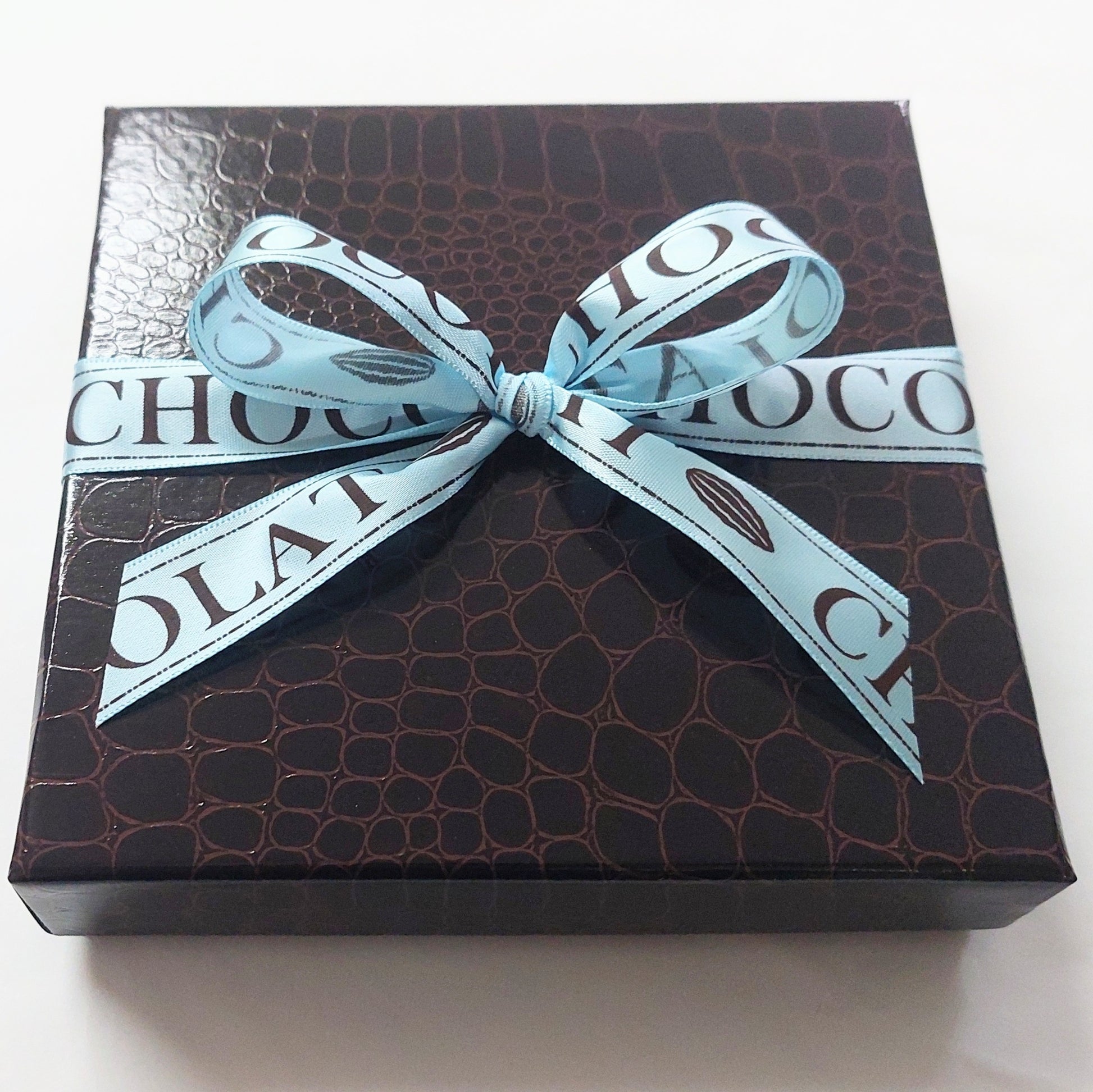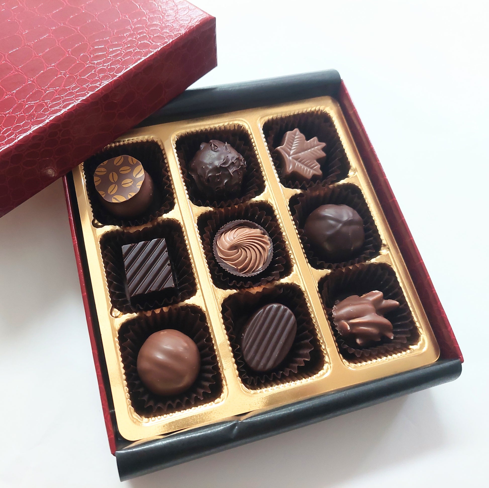 Boîte façon crocodile remplie de 9 chocolats assortis (truffes et chocolats fourrés).